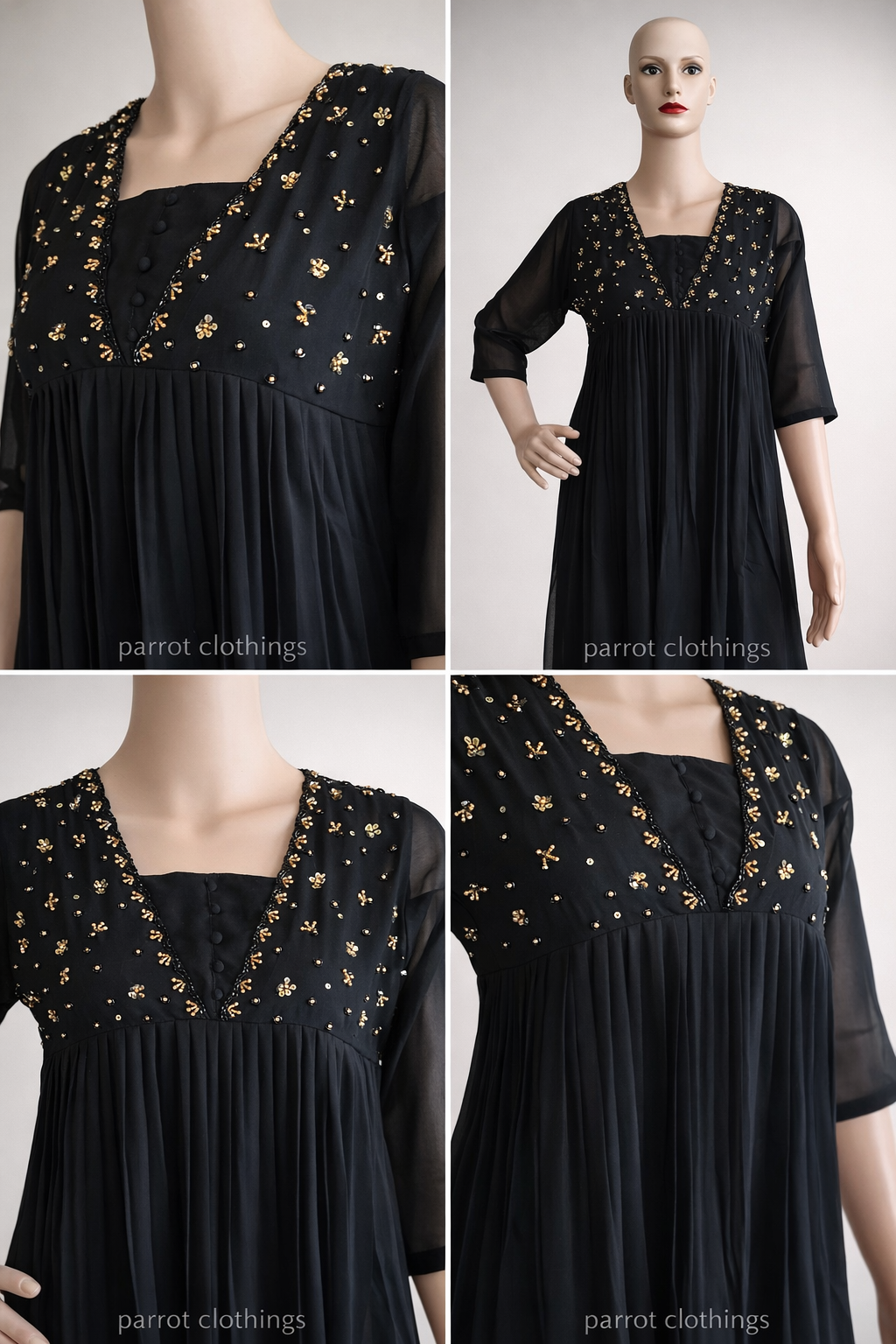 Black A-Line kurthi|Premium Quality| Golden beads work|